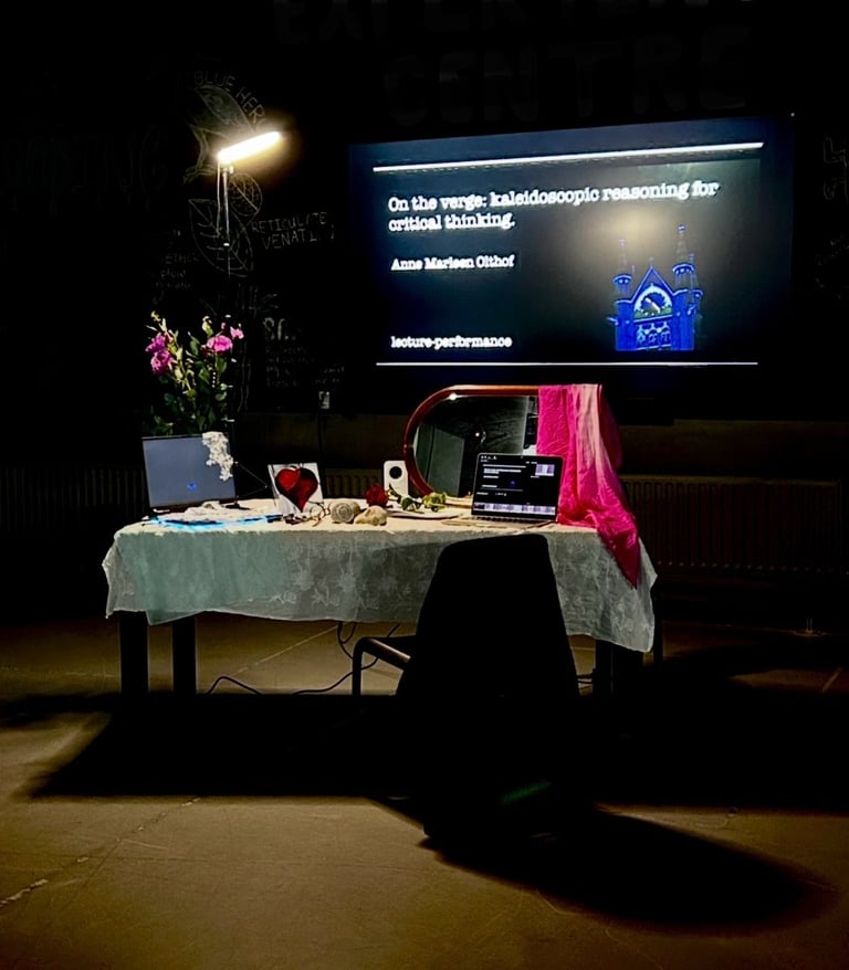 Olthof, A. M. (2025). On the verge: Kaleidoscopic Reasoning for Critical Thinking. [lecture-performance], Fragments Festival 2025, The Hague, Netherlands. https://doi.org/10.13140/RG.2.2.14273.11368